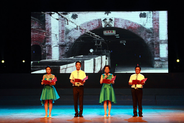 首先上場表演的是來自萍礦社區(qū)機關(guān)離休支部老同志的大合唱。他們手捧鮮花,精神矍鑠,一曲高昂的《大刀進行曲》仿佛讓人回到了那個戰(zhàn)火紛飛的年代,堅定的眼神、激昂的歌聲,令人震撼。隨后,由公司機關(guān)黨委組織的近百人大合唱《保衛(wèi)黃河》,公司副總師以上領(lǐng)導(dǎo)全部上場,和機關(guān)工作人員一起放聲歌唱,氣勢磅礴的歌聲,獲得了全場觀眾熱烈的掌聲。接下來的演出中,來自各基層單位的職工群眾,載歌載舞,盡情抒發(fā)對歷史的緬懷、對萍礦的熱愛。楊橋煤礦選送的詩朗誦《在這片熱土上》,通過回憶萍礦改革發(fā)展的歷史,謳歌萍礦人弘揚“義無反顧、敢為人”的安源精神,積極推進企業(yè)扭虧脫困、改革轉(zhuǎn)型各項工作,反映了萍礦人堅定打贏扭虧脫困攻堅戰(zhàn)的決心和信心,那賦有鮮明企業(yè)特色的鏗鏘話語,引起了現(xiàn)場觀眾的強烈共鳴。