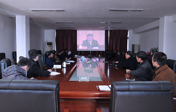 圖為萍礦集團黨委中心組成員集中觀看大會盛況。