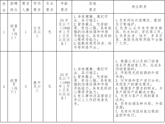 江西月池天然礦泉水有限公司因生產(chǎn)經(jīng)營需要,面向社會招聘以下人員。有關招聘事項公告如下: 一、招聘崗位及人數(shù)