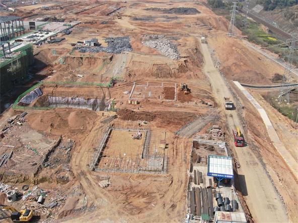 辦公生活區(qū):食堂基礎(chǔ)完成100%,辦公樓基礎(chǔ)地梁完成90%,宿舍基礎(chǔ)完成80%。
