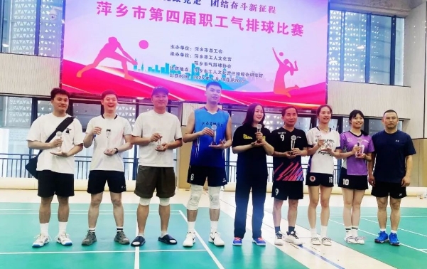 為慶祝中華全國總工會(huì)成立100周年,4月19日至20日,“中國夢(mèng)・勞動(dòng)美”萍鄉(xiāng)市第四屆職工氣排球賽在市工人文化宮綜合訓(xùn)練館舉行。萍礦代表隊(duì)獲得男子組比賽三等獎(jiǎng)。