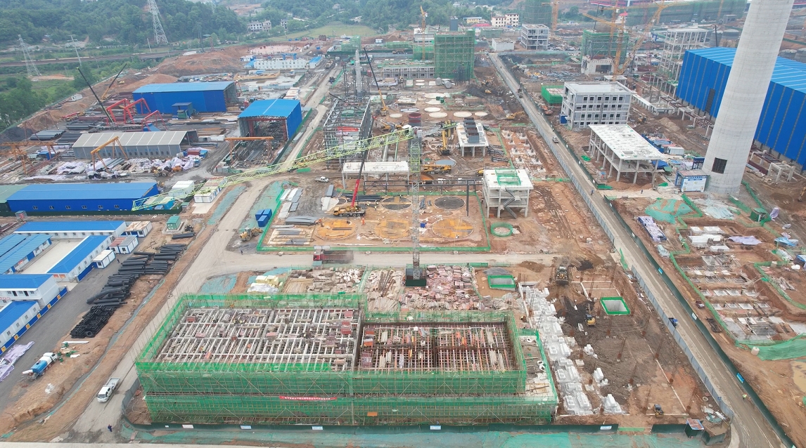 7. 制酸干吸工段、預(yù)處理工段結(jié)構(gòu)封頂,焚燒爐基礎(chǔ)完成,凈化工段施工至二層。