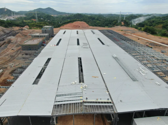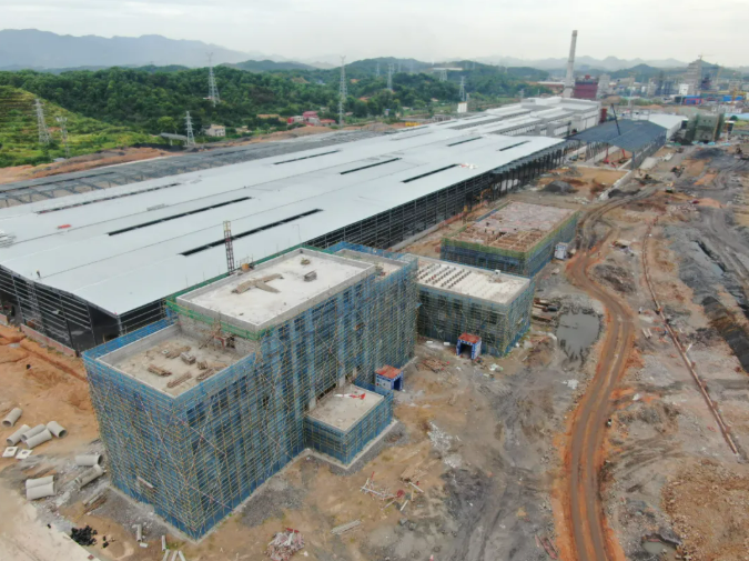 成型工段:700噸生產(chǎn)線車間鋼結(jié)構(gòu)完成98%,500噸生產(chǎn)線鋼結(jié)構(gòu)完成96%。