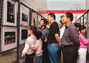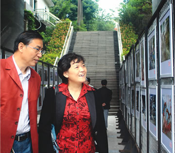 國慶期間,集團公司工會、文聯(lián)舉辦了萍礦集團公司國慶職工攝影藝術(shù)作品展。這次共展出作品120幅,是公司廣大攝影愛好者最新作品,反映了礦區(qū)職工家屬生產(chǎn)生活、安全文化建設(shè),以及祖國壯麗河山、民族風(fēng)情等。左圖為省煤集團公司黨委副書記、紀委書記劉國清和萍礦集團公司黨委副書記、紀委書記吳耀純,下圖為萍礦集團公司黨委副書記、工會主席黃建明(中)在觀看展覽。(袁鵬 黃興波攝)