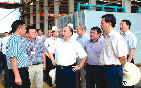 走出車間,凌成興一行在烈日下步行來到250噸/天光伏玻璃生產線建設工地。當得知項目建設已完成75%以上的工程量,有望9月底順利實現點火投產時,凌成興非常高興。劉建高匯報說,安源股份公司在省委省政府和萍鄉(xiāng)市委市政府的關懷和支持下,緊緊抓住省煤炭集團公司重大戰(zhàn)略重組機遇,全力推進玻璃產業(yè)的發(fā)展,爭取完成“三年建四線六窯”的任務,努力打造一條完整的玻璃產業(yè)鏈,使安源玻璃工業(yè)園成為年產值30億元、年利稅5億元的玻璃生產和深加工基地,積極推動企業(yè)轉型發(fā)展和地方經濟建設。凌成興指出,安源玻璃工業(yè)園在改造轉型中壯大了規(guī)模,希望繼續(xù)加快建設,變工程項目為現實生產力,為萍鄉(xiāng)乃至江西社會經濟發(fā)展作出應有貢獻。