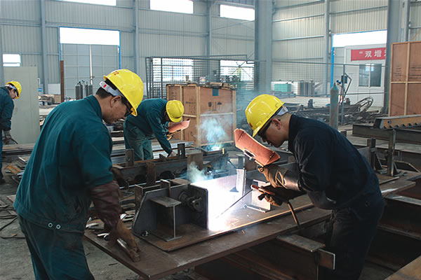 圖為職工在為支架主梁組焊。(黃優(yōu)中 攝)