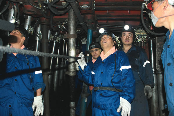 4月9日上午,前來參加安源煤礦質(zhì)量標(biāo)準(zhǔn)化現(xiàn)場會的集團(tuán)公司董事長、黨委書記彭志祥等領(lǐng)導(dǎo),有關(guān)部門人員及各礦負(fù)責(zé)人邊聽介紹,邊參觀采四區(qū)風(fēng)巷兩側(cè)整齊支撐著的單頂柱,大家個個都嘖嘖稱贊。