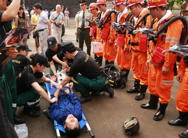 為繼續(xù)深化“安全生產(chǎn)月”活動,牢固樹立“強化紅線意識、促進安全發(fā)展”理念,切實提高應(yīng)急救援 指戰(zhàn)員的業(yè)務(wù)技術(shù)素質(zhì),6月19日,集團公司在救護大隊 舉行2014年應(yīng)急救援演練,共有7支救護隊和2支醫(yī)療隊參加了演練。省煤監(jiān)局贛西南分局副局長丁秋云,萍鄉(xiāng)市安監(jiān)局局長、黨組副書記黃建輝,萍礦集團分管領(lǐng)導(dǎo)及有關(guān)部門負(fù)責(zé)人和各煤礦安全副礦長到現(xiàn)場觀摩演練。 上午8時,演練正式開始。救援指戰(zhàn)員按照應(yīng)急預(yù)案演練的要求,進行了軍事化隊列操練、模擬礦井火災(zāi)處理、醫(yī)療急救、架木棚和高泡滅火等項目的演練。在模擬礦井火災(zāi)事故處理中,從發(fā)生火情,至調(diào)度室發(fā)布命令,救援隊整裝待命,正確佩用氧氣呼吸器,根據(jù)事故性質(zhì)進行災(zāi)區(qū)偵察工作,搶救遇險人員,搬運傷員,進行醫(yī)療急救等整個過程場景逼真,貼近實際,救援隊員配合密切,處置得力,充分體現(xiàn)了救援隊員不怕困難、反應(yīng)靈敏和特別能戰(zhàn)斗的實戰(zhàn)精神。