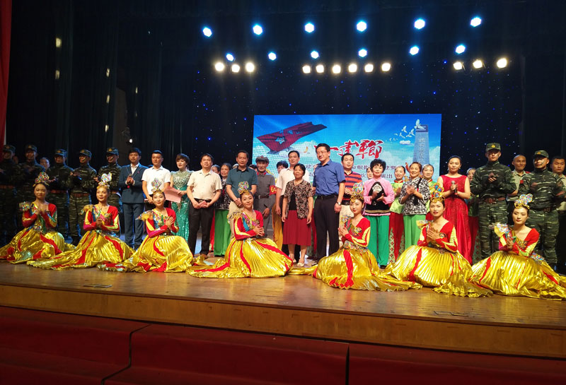 氣勢恢宏的歌伴舞《東方紅》拉開了演出的序幕,來自萍礦老年藝術(shù)團(tuán)的傾情表演贏得了現(xiàn)場觀眾陣陣熱烈的掌聲。萍礦安源煤礦退休老工人表演的《十送紅軍》情景歌舞劇,生動地敘述了根據(jù)地群眾依依不舍歡送紅軍的感人場景,再次展現(xiàn)了軍民的魚水深情。萍鄉(xiāng)公安消防支隊?wèi)?zhàn)士演唱的《祝福祖國》,深情并茂地表達(dá)了對祖國和人民的深深熱愛和祝福。身著迷彩服的武警戰(zhàn)士邁著鏗鏘有力的步伐,一首歌伴舞《有我在》,展現(xiàn)了和平年代武警戰(zhàn)士誓保平安的莊嚴(yán)承諾。 紅歌手楊衛(wèi)華飽含深情演唱的《咱老百姓》,表達(dá)了萍鄉(xiāng)人民熱愛祖國、建設(shè)家鄉(xiāng)的美好愿望和部隊官兵扎根第二故鄉(xiāng),忠于黨和人民,苦練本領(lǐng),勇于奉獻(xiàn)的情懷。臺上臺下互動感染,呈現(xiàn)了軍民聯(lián)歡一家親的動人場面,將演出推向了高潮。 在眾人期待的眼神中,被戰(zhàn)士們親切地稱為“兵媽媽”的全國全省擁軍模范陶艷萍走上了舞臺,接受來自部隊官兵的最高敬禮,并接受象征部隊榮譽(yù)的軍裝。演出在歌舞《我們的中國夢》中圓滿閉幕。