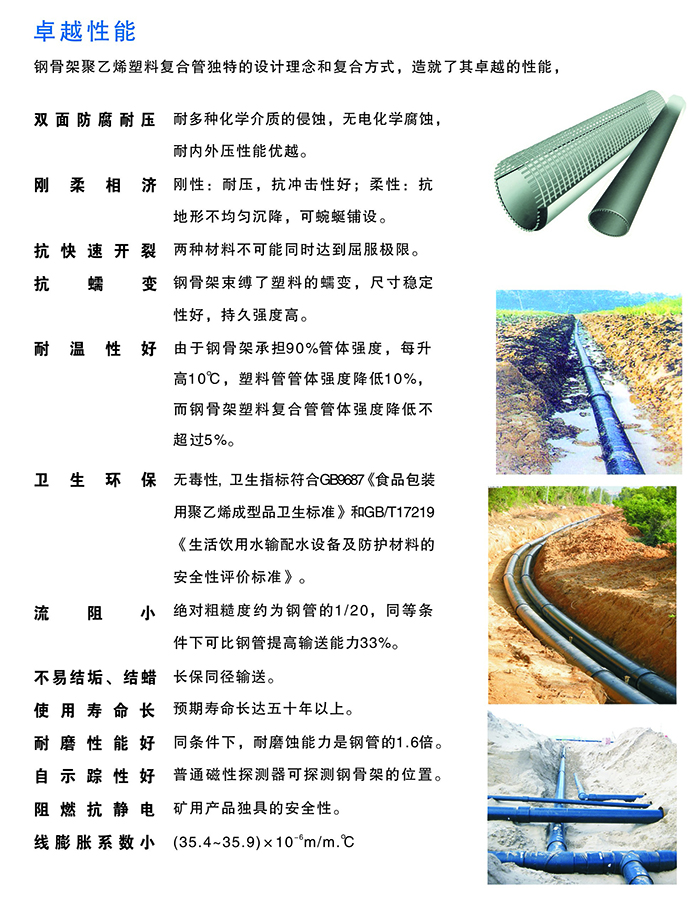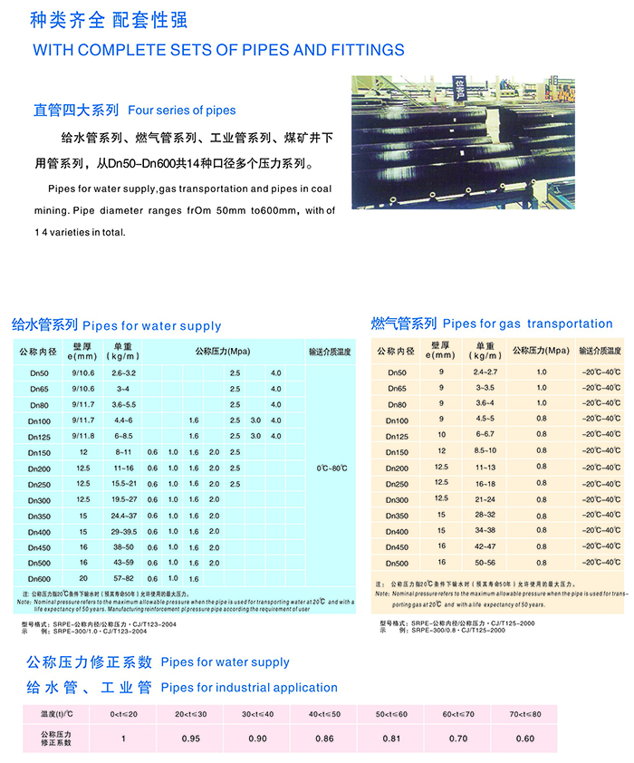 安源管道實業(yè)股份有限公司始建于2002年,是江西省唯一一家鋼骨架聚乙烯塑料復(fù)合管道生產(chǎn)企業(yè)。公司坐落于江西省萍鄉(xiāng)市高新技術(shù)工業(yè)園玉湖路1號,占地12萬平方米,緊鄰滬瑞高速公路,浙贛鐵路線和319、320國道,距長沙黃花機場僅70分鐘車程。公司注冊資本7650萬元,現(xiàn)有員工305人,其中大專以上學(xué)歷人員84人,擁有高級職稱人員12人,專職研發(fā)人員32人,是集產(chǎn)品專業(yè)化研發(fā)、生產(chǎn)、營銷、技術(shù)服務(wù)、人才培訓(xùn)為一體的現(xiàn)代化管道企業(yè),自2013年起連續(xù)被評為高新技術(shù)企業(yè),并于2016年12月在“新三板”成功掛牌,證券代碼:870160。 安源管道公司擁有當(dāng)今國內(nèi)技術(shù)領(lǐng)先的12條生產(chǎn)線及配套的管件生產(chǎn)設(shè)備,年生產(chǎn)各種管徑的鋼骨架塑料復(fù)合管和鋼絲網(wǎng)骨架塑料復(fù)合管產(chǎn)達1000公里。產(chǎn)品遠銷國內(nèi)30多個省、市,并出口國外,用戶達2000余家,廣泛應(yīng)用于石油、化工、燃氣、供水、采礦等行業(yè),是目前國內(nèi)唯一能生產(chǎn)Dn600鋼骨架聚乙烯塑料復(fù)合管的企業(yè)。 安源管道公司創(chuàng)建10余年來,牢固樹立科技興企、質(zhì)量興企的發(fā)展意識,大力實施品牌化生產(chǎn)、差異化發(fā)展戰(zhàn)略,全面提升產(chǎn)品研發(fā)與市場競爭力,先后有66個項目取得國家專利(其中3項發(fā)明專利),形成了具有高市場占有率的品牌優(yōu)勢。公司經(jīng)濟效益連續(xù)多年穩(wěn)步增長,先后被評為江西省國資委先進基層黨組織、江西省質(zhì)量管理先進企業(yè)、江西省名牌產(chǎn)品、江西省高新技術(shù)企業(yè)、萍鄉(xiāng)市市長質(zhì)量獎、江西省模范職工之家、江西省五一勞動獎狀、江西省職業(yè)道德標(biāo)兵單位、萍鄉(xiāng)十大品牌企業(yè)、萍鄉(xiāng)市開發(fā)區(qū)“五星”信用示范企業(yè)、萍鄉(xiāng)市開發(fā)區(qū)知識產(chǎn)權(quán)示范企業(yè)等。公司“企業(yè)技術(shù)中心”經(jīng)省工信委認定為“省級企業(yè)技術(shù)中心”。 安源管道公司以“質(zhì)量為本,服務(wù)客戶,用戶至上”的發(fā)展理念,竭誠為廣大用戶服務(wù);同時以精良的現(xiàn)代工藝、嚴密的質(zhì)量控制、完善的服務(wù)體系、誠實守信的經(jīng)營理念,致力于不斷發(fā)展管道制造業(yè)。 產(chǎn)品介紹: