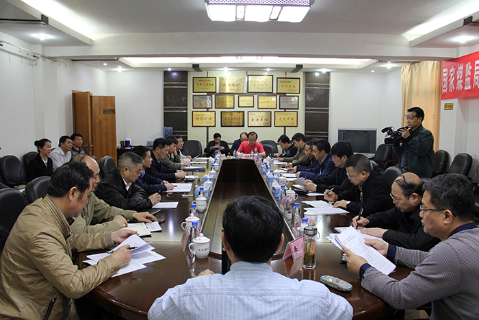 圖為檢查組一行在聽(tīng)取匯報(bào)。