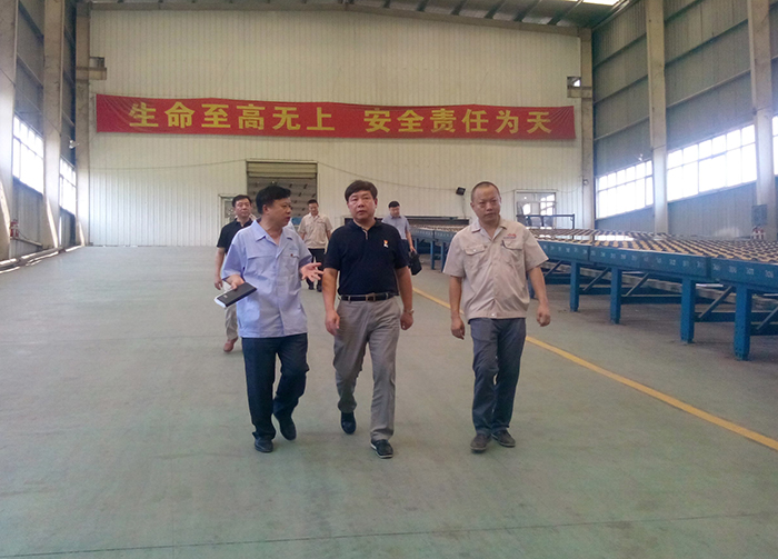 圖為王宏深入浮法玻璃廠生產(chǎn)車間了解生產(chǎn)情況。歐陽淘 攝