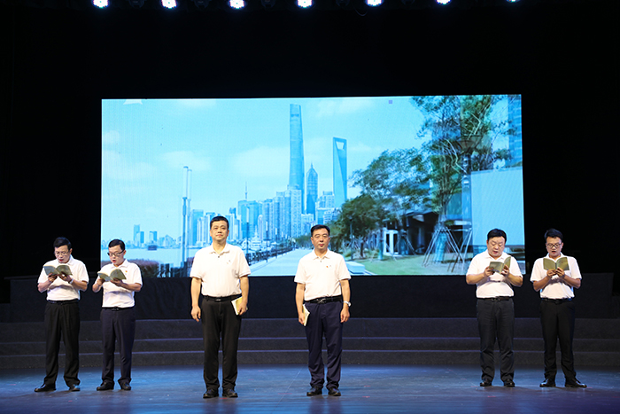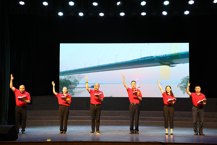 “我們的人民熱愛生活,期盼有更好的教育、更穩(wěn)定的工作、更滿意的收入、更可靠的社會保障、更高水平的醫(yī)療衛(wèi)生服務(wù)、更舒適的居住條件、更優(yōu)美的環(huán)境,期盼孩子們能成長得更好、工作得更好、生活得更好。人民對美好生活的向往,就是我們的奮斗目標(biāo)!彪S著習(xí)近平總書記重要講話視頻結(jié)束,集團領(lǐng)導(dǎo)班子成員慷慨激昂地接續(xù)誦讀《習(xí)近平新時代中國特色社會主義思想專題摘編》中“堅持以人民為中心”部分內(nèi)容,用激情澎湃、高昂向上的時代強音,激蕩起廣大黨員干部的昂揚斗志,展現(xiàn)出新時代領(lǐng)導(dǎo)班子的卓然風(fēng)采,充滿了濃濃的愛國情、向黨志、人民情!白屓w中國人民和中華兒女在實現(xiàn)中華民族偉大復(fù)興的歷史進程中共享幸福和榮光!”鏗鏘有力的誦讀將整場活動推向高潮,現(xiàn)場響起熱烈掌聲。