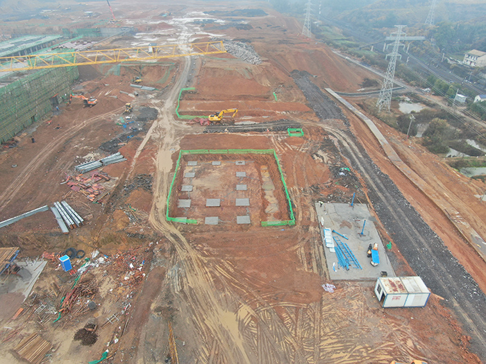 煙囪:基礎(chǔ)工程完成,主體工程完成25%。 成品工段:獨(dú)立基礎(chǔ)工程完成75%,擋土墻完成20%。 裝箱工段:獨(dú)立基礎(chǔ)工程完成25%。 均化庫:獨(dú)立基礎(chǔ)完成25%。
