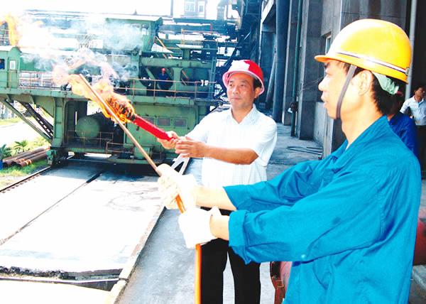 上午11點(diǎn)18分,萍鄉(xiāng)焦化有限責(zé)任公司40萬噸續(xù)建工程正式點(diǎn)火烘爐。集團(tuán)公司董事長(zhǎng)、黨委書記彭志祥,萍鄉(xiāng)焦化有限責(zé)任公司總經(jīng)理朱小平,高坑鎮(zhèn)黨委書記余勤,分別手持熊熊燃燒的火把,分四處將爐火點(diǎn)燃,整個(gè)工程烘爐正式開始。