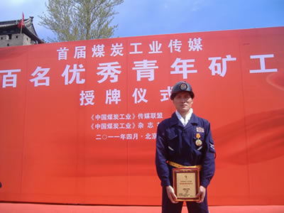 4月22日,“百名優(yōu)秀青年礦工”授牌儀式在北京八達(dá)嶺水關(guān)長(zhǎng)城隆重舉行。捧著沉甸甸的獎(jiǎng)牌,張來(lái)清激動(dòng)萬(wàn)分,在百名優(yōu)秀青年礦工旗幟上鄭重地簽下了自己的名字。他說(shuō),作為一名來(lái)自紅色安源的礦工,能夠在古老的長(zhǎng)城展示江西煤礦工人的青春風(fēng)采,感到非常自豪,他將以“不到長(zhǎng)城非好漢” 的意志鞭策自己,發(fā)揚(yáng)煤礦工人特別能吃苦、特別能戰(zhàn)斗的精神,為建設(shè)和諧幸福企業(yè)做貢獻(xiàn)。