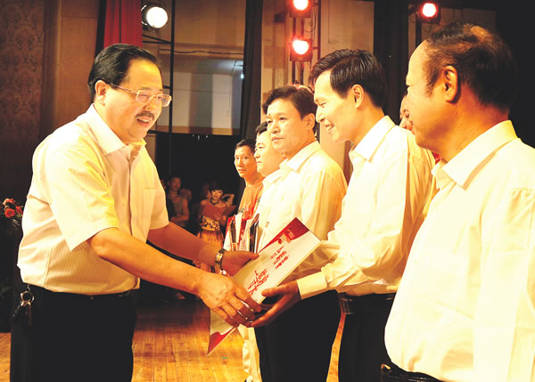 圖為集團(tuán)公司總經(jīng)理魏建明為獲得一等獎(jiǎng)和特別獎(jiǎng)的單位頒獎(jiǎng)。(記者 袁鵬 攝)