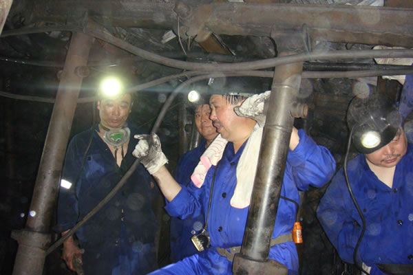 在井下,魏建明一路查看安全設(shè)施和巷道布置,一路詢問生產(chǎn)組織情況,聽取白源礦黨政領(lǐng)導(dǎo)的匯報(bào)。進(jìn)入今年以來,白源礦井下地質(zhì)條件發(fā)生根本性變化,大部分采區(qū)都只能對(duì)煤質(zhì)差的老墟進(jìn)行復(fù)采,因而煤炭回收率低,由于在崗人員老化、離退休和出國(guó)務(wù)工等因素影響,造成井下一線生產(chǎn)勞動(dòng)力不足。加上比去年多出一倍的開拓進(jìn)尺工程和巷道修理工程量等因素的影響,嚴(yán)重制約經(jīng)濟(jì)效益的發(fā)揮,生產(chǎn)效益面臨巨大壓力。魏建明對(duì)白源礦不畏困難,夾縫找煤求生存的精神和向質(zhì)量標(biāo)準(zhǔn)化要安全的責(zé)任感給予了充分肯定。