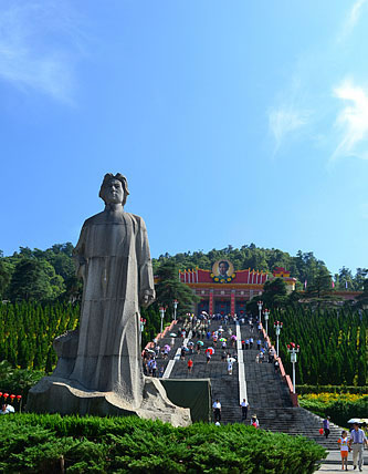 2012中國紅色旅游博覽會(huì)2日在江西萍鄉(xiāng)舉行,毛澤東之女李訥等為“毛主席去安源”巨型瓷像恢復(fù)工程揭幕。