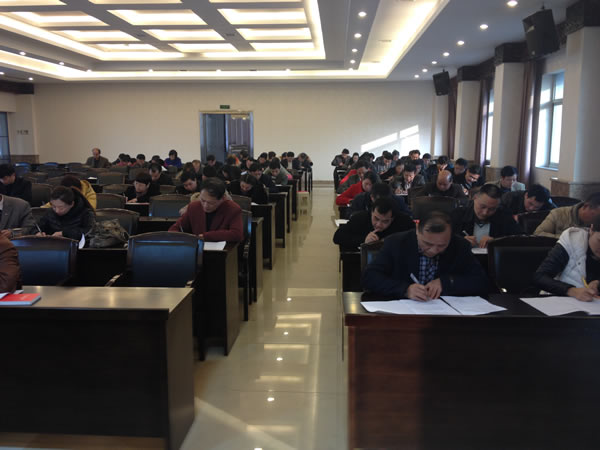 圖為機(jī)關(guān)科級(jí)干部正在緊張考試。